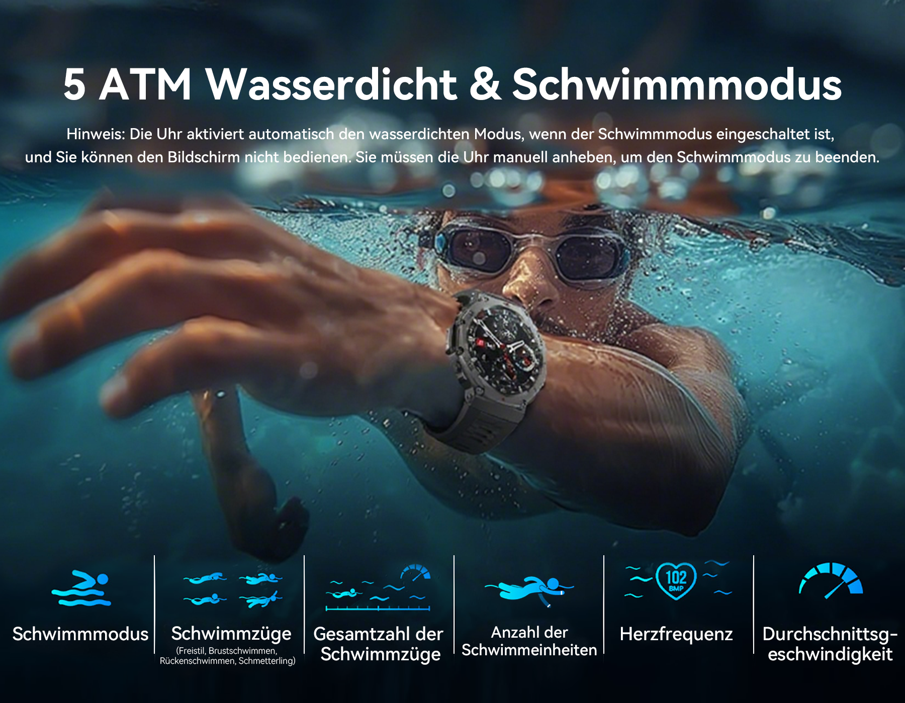 Jetzt kannst du endlich dein Handy weglegen! Unsere Sportuhr verfügt über eine integrierte Anruffunktion, mit der du verbunden bleibst, egal ob du draußen, im Fitnessstudio oder sogar am Pool bist. Telefoniere vom Handgelenk, bleibe mühelos verbunden und mache jedes Workout sicherer und reiner.